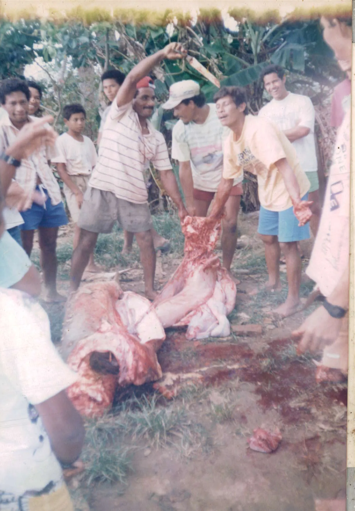 Após a captura do tubarão, o animal era cortado na beira rio Doce, no porto de Regência.