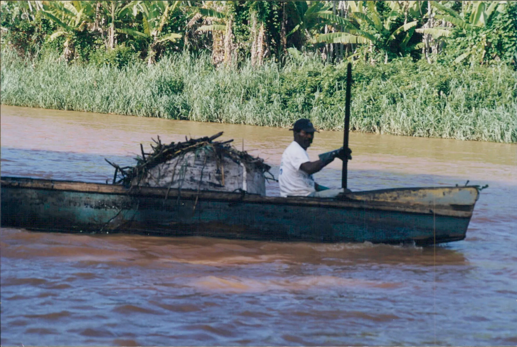 Pescador, conhecido como Luiz Preto, apoiou na ação de recolhimento do óleo que estava na vegetação no Rio Doce.
