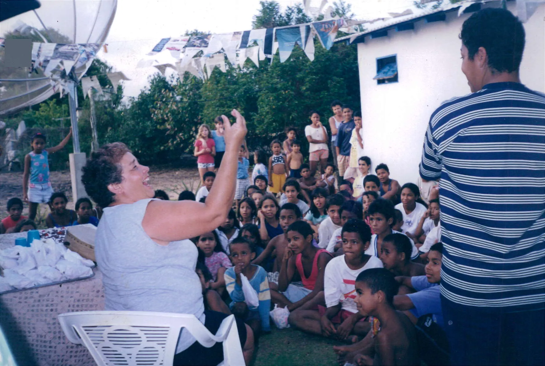 A professora e escritora Josmari Araújo dos Santos, conta e interpreta suas histórias de um jeito único, para as crianças de Regência.