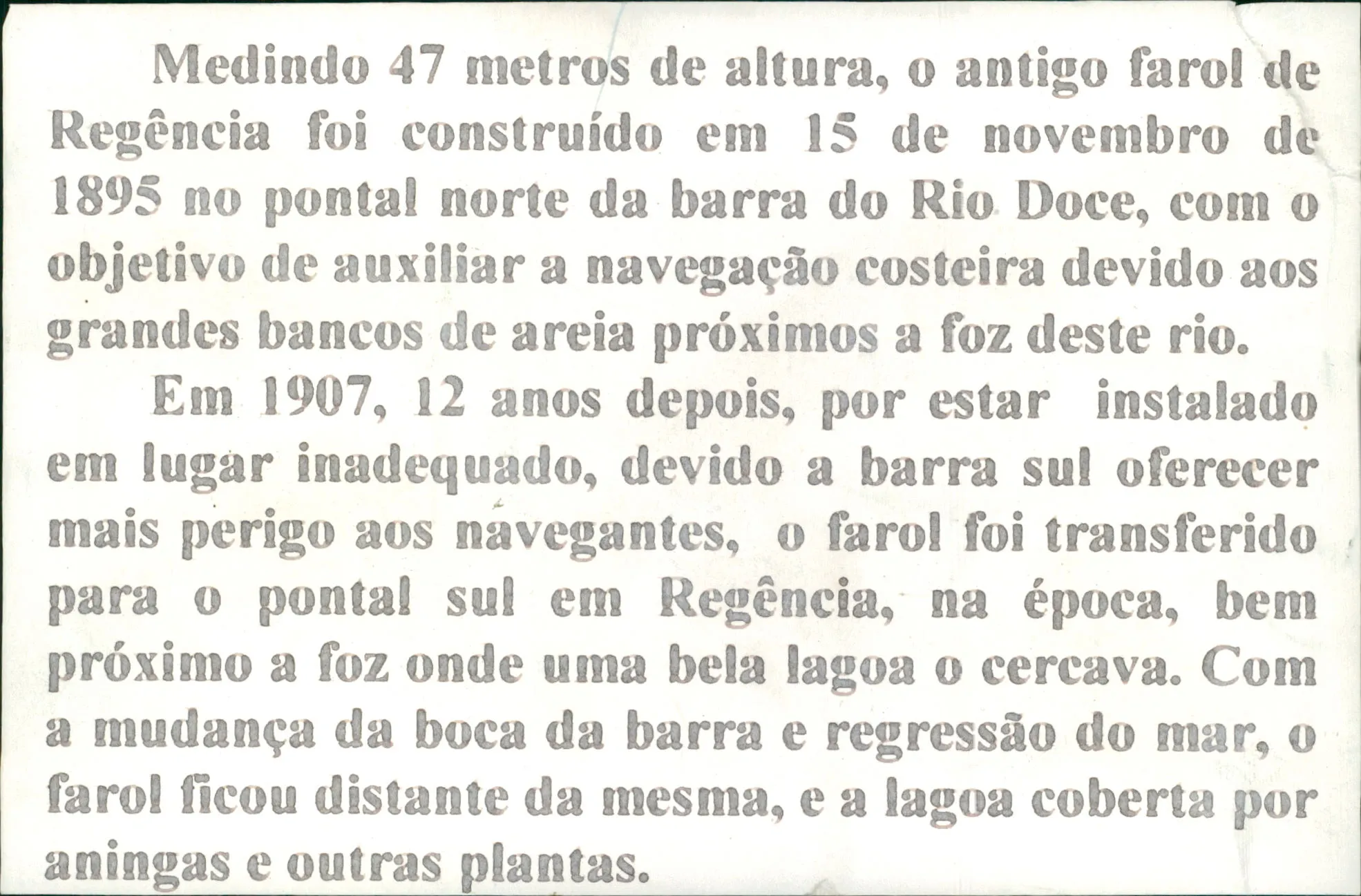 Cópia do resumo histórico sobre o antigo farol de Regência.