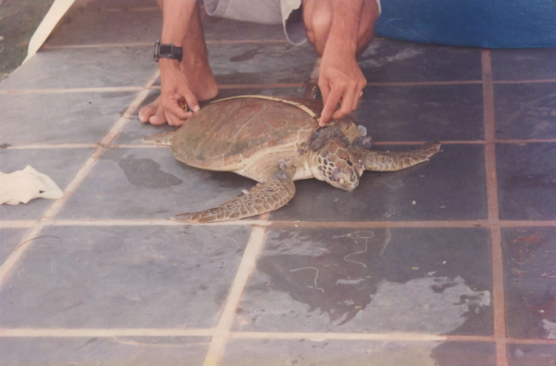 Triagem realizada nas tartarugas que vivem em tanques do Projeto Tamar em Regência.