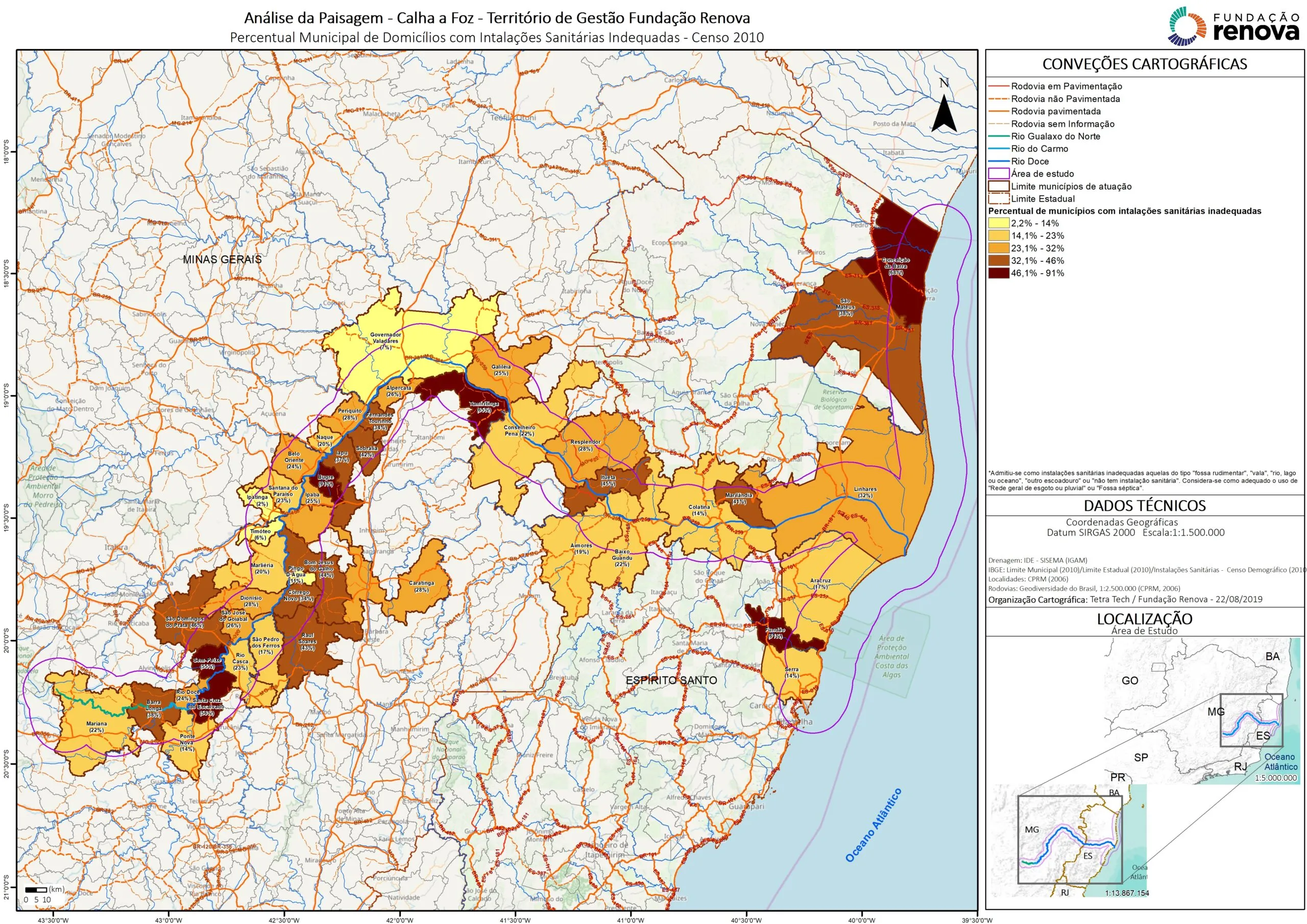 Calha, Foz do Rio Doce, Instalação Sanitária inadequada, localização, Mapa