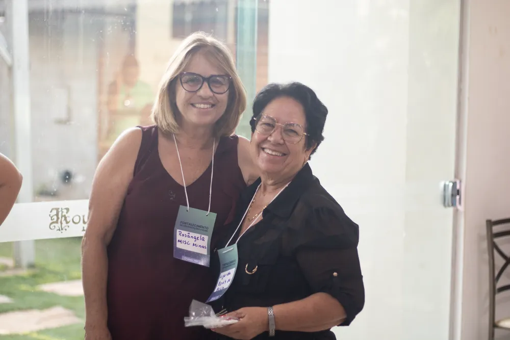 Representante Grupo de Artesãos de Revés do Belém presenteando representante da Organização MISC Minas.