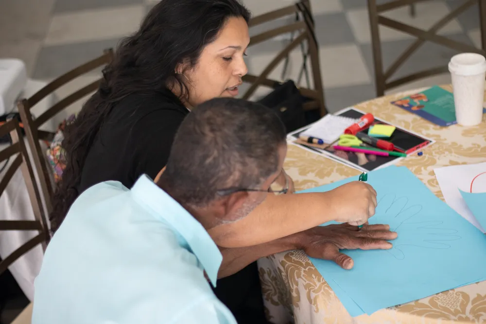 Representantes AFAREVES fazendo seu cartaz para a última dinâmica.