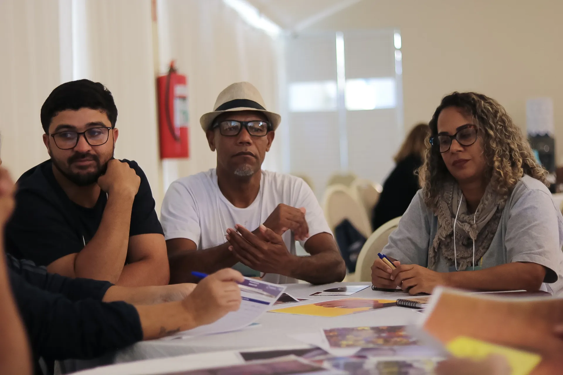 Grupo discutindo sobre as imagens da primeira dinâmica em grupo.
