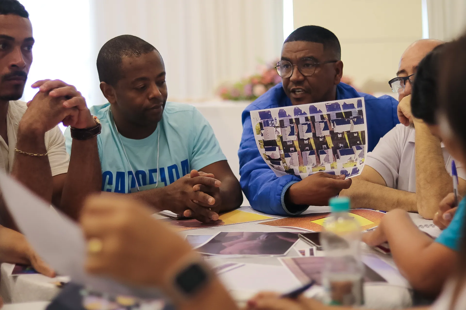 Grupo discutindo sobre as imagens da primeira dinâmica em grupo. Organizações visíveis: ACARBO.
