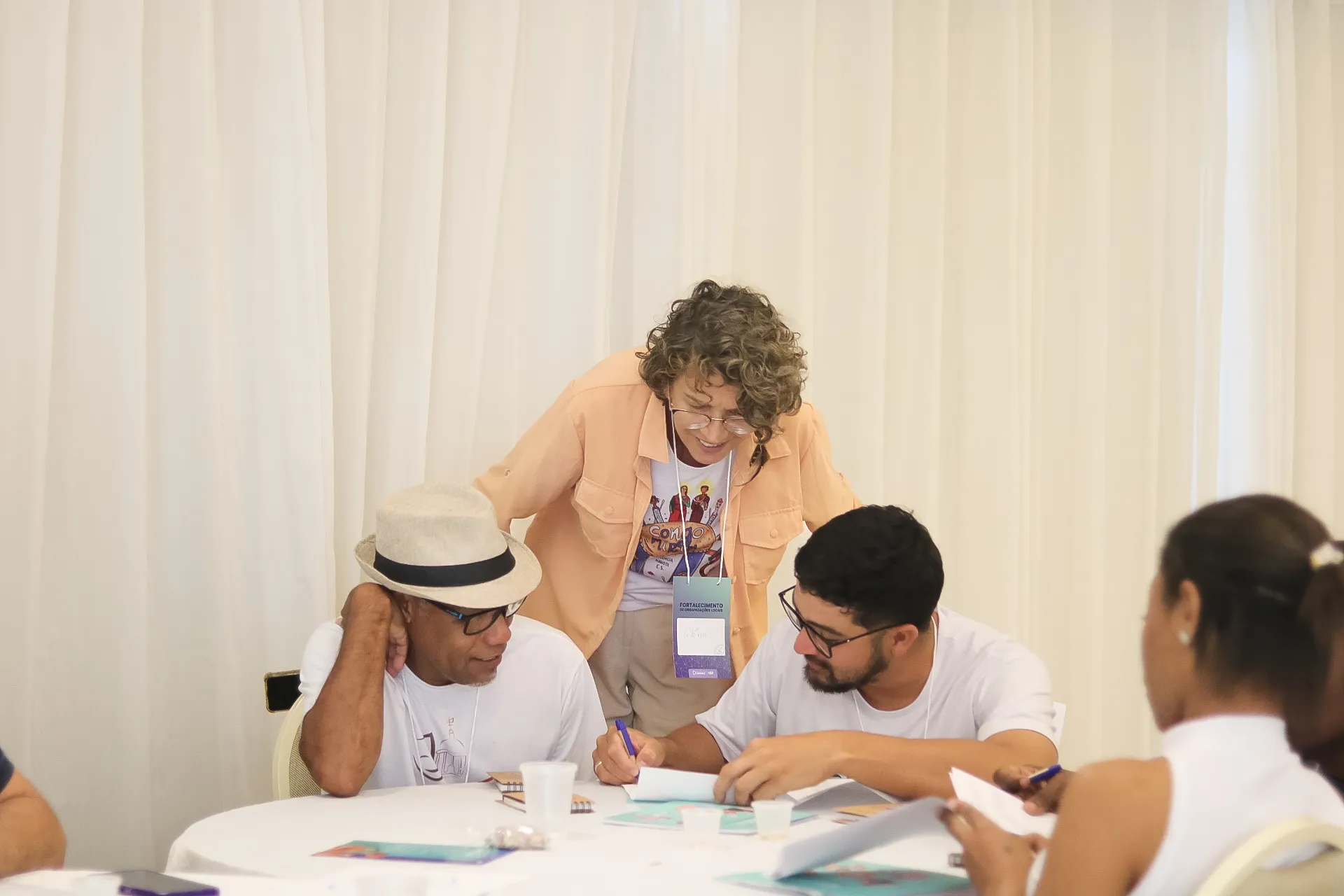 Representantes realizando a segunda dinâmica em grupo: Congo Mirim, Cia de Artes Regência Augusta.