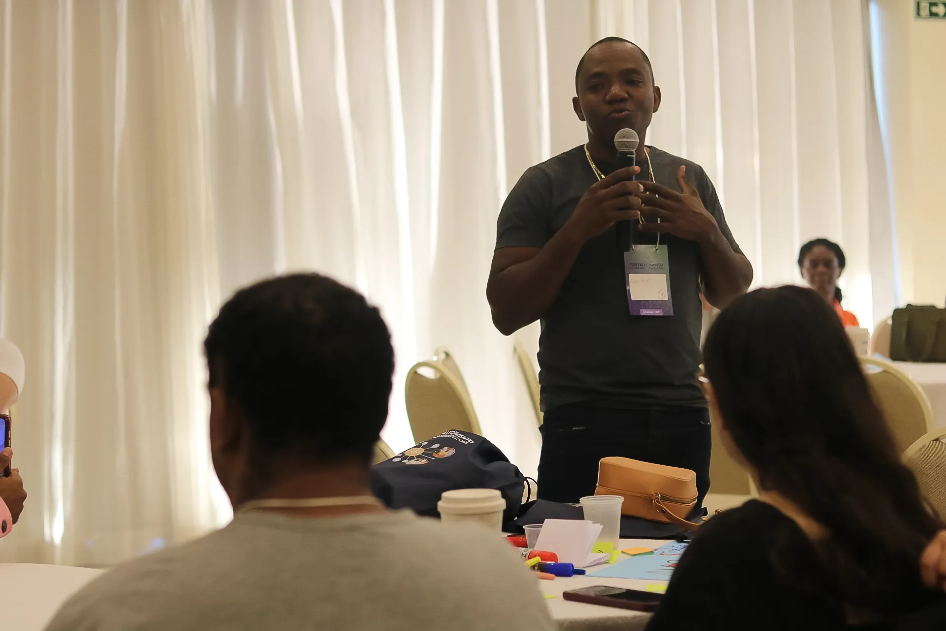 Representante: associação de capoeira nação de cristo apresentando seu cartaz.
