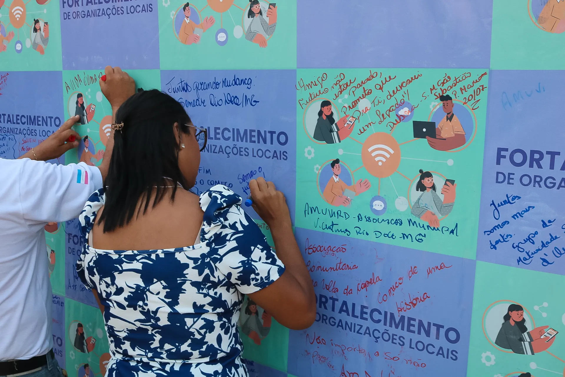 Representante assinando mural do FOL.